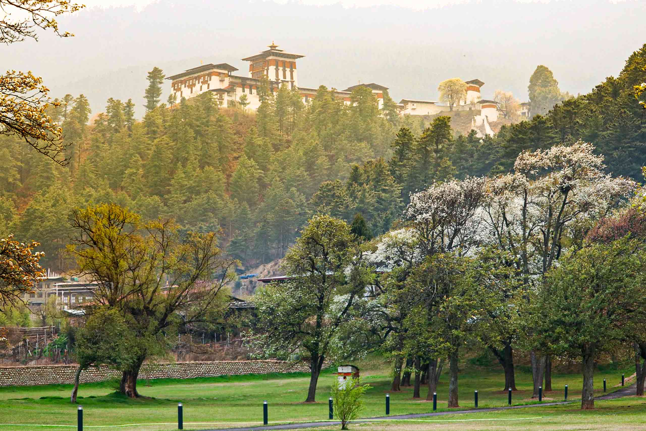 Scenic drive through Pele La and Yotong La passes. Visit Chendebji Chorten, Trongsa Dzong, and traditional weaving centers.